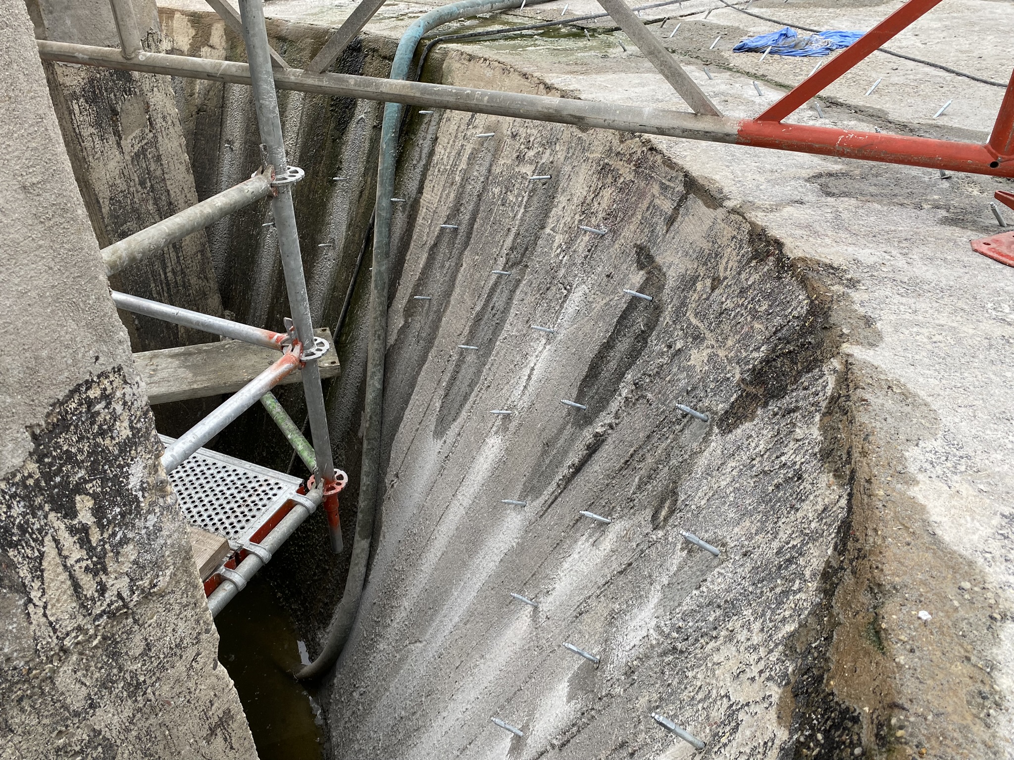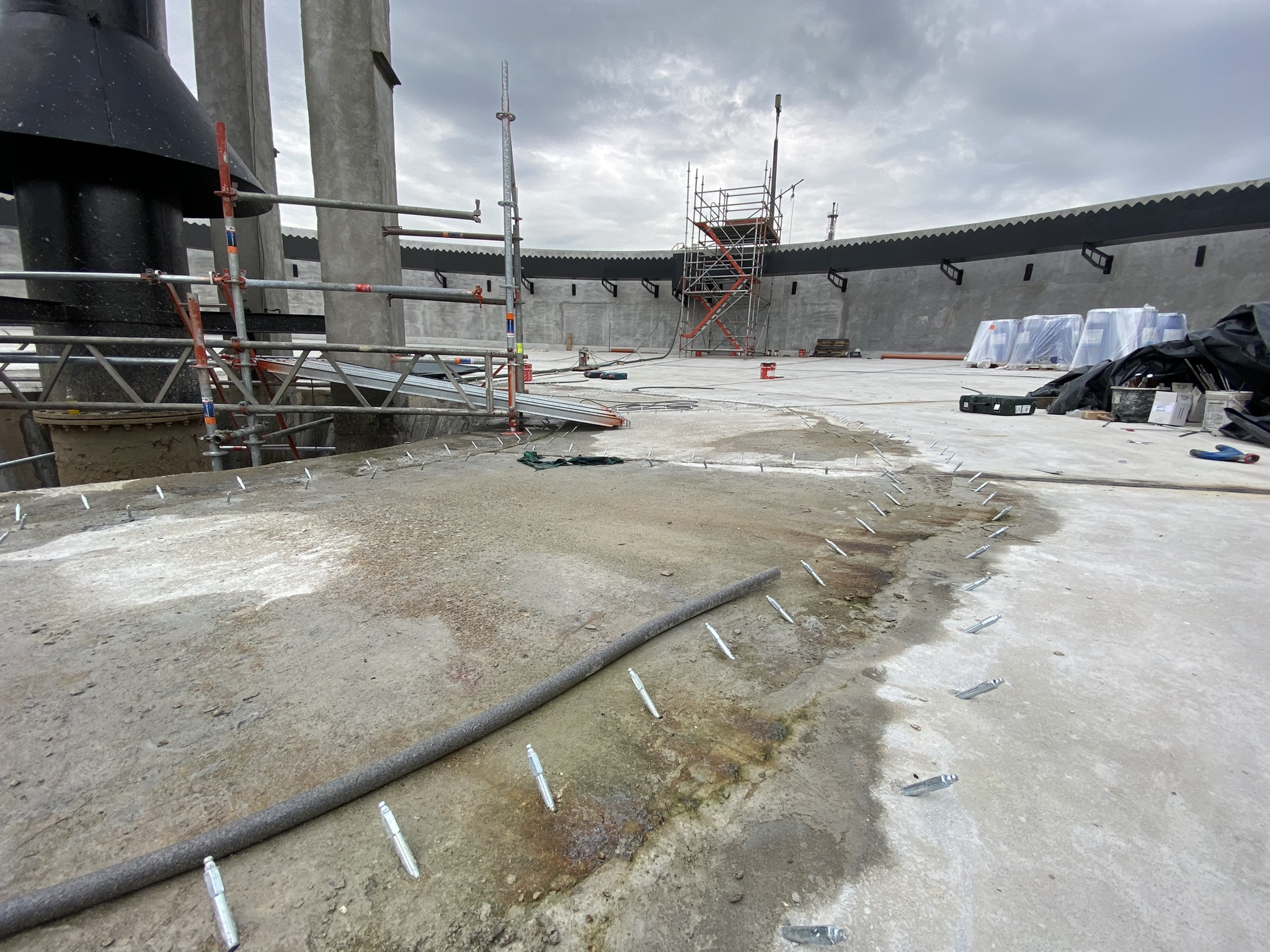Wykonaliśmy naprawię i uszczelnienie powierzchni zbiornika oczyszczalni w Grupa Azoty ZAK S.A. poprzez zastosowanie iniekcji ciśnieniowej.